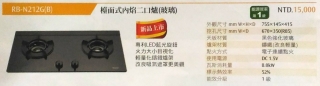 林內牌 RB-N212G(B) 檯面式內焰二口爐(玻璃)