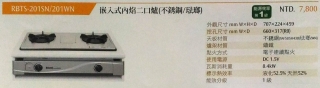 林內牌 RBTS-201SN/201WN 嵌入式內焰二口爐(不銹鋼/琺瑯)