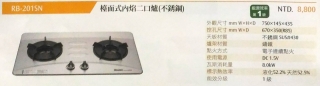 林內牌 RB-201SN 檯面室內焰二口爐(不銹鋼)